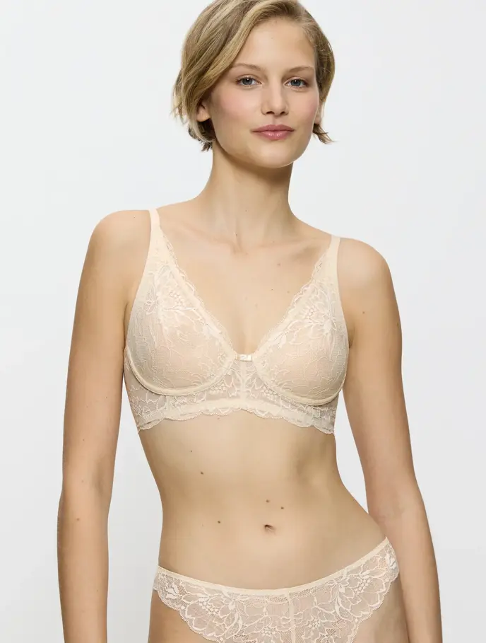 Concebido para parecer e assentar como um soutien com aro, mas para proporcionar a liberdade e conforto de um soutien sem aro, graças à inovação do galão em renda moldada.