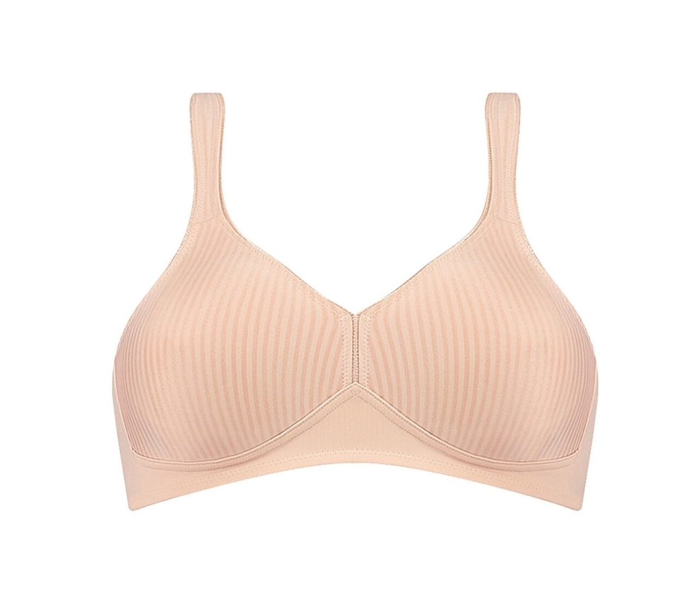Parece um sonho usar este soutien de algodão às riscas. É extremamente suave, tem copas moldadas macias e não tem aro. Até se esquecerá que está a usá-lo.Soutien suave e sem aro